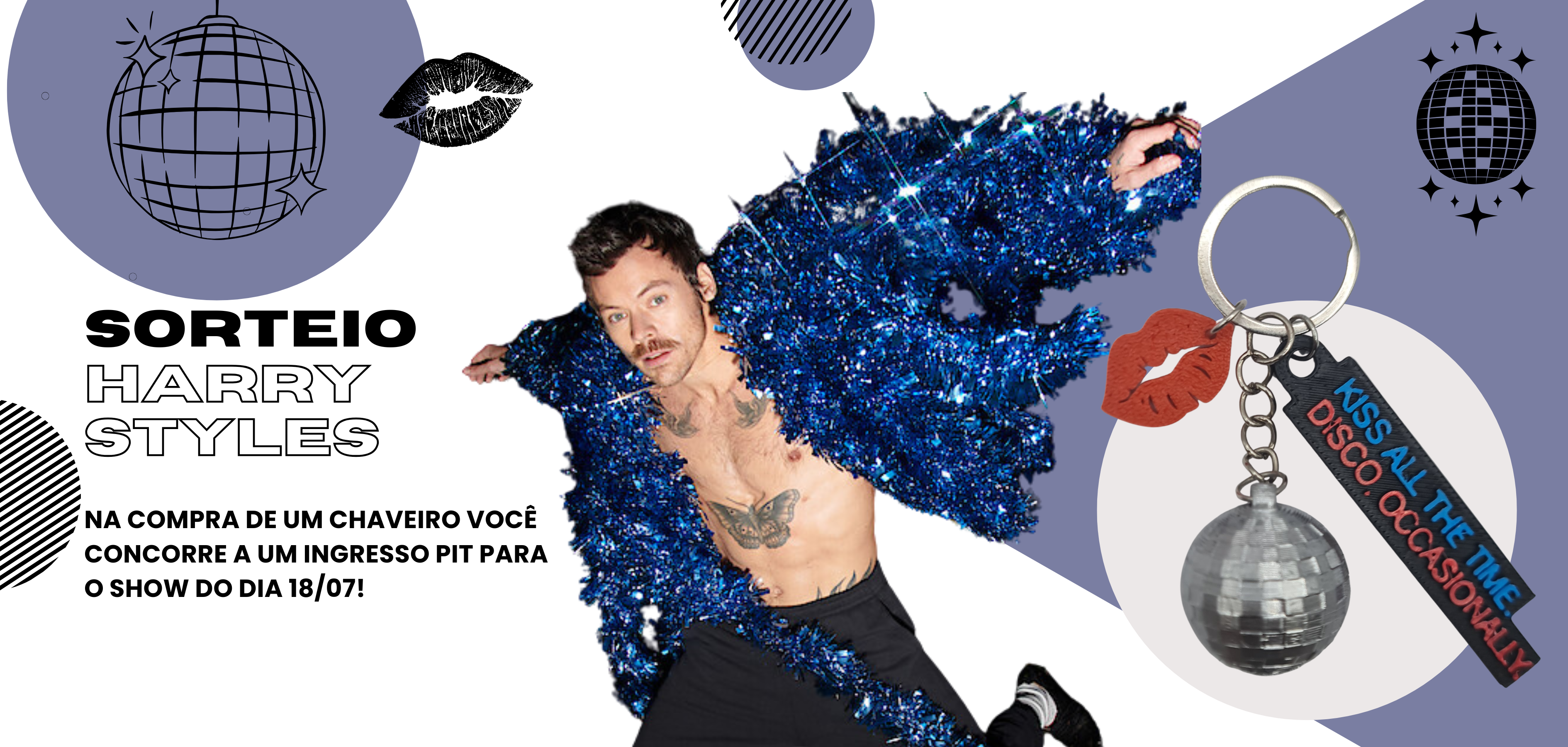 Comprando um chaveiro participante da promoção, você poderá escolher um número para concorrer a um ingresso para o show do Harry Styles em São Paulo.